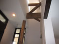 玄関吹き抜けの上部は、梁型を見せ吹き抜けをダイナミックな空間を作ります。