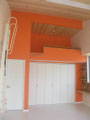 寝室にもウォークインクローゼットや書斎コーナーに続くかわいいアーチの垂壁遊び心いっぱいの楽しい寝室ができました。