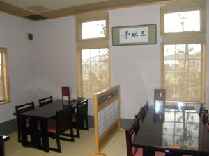 豪華な庭の滝を見渡せる客席もあります。ご飯が優雅に食べられます。